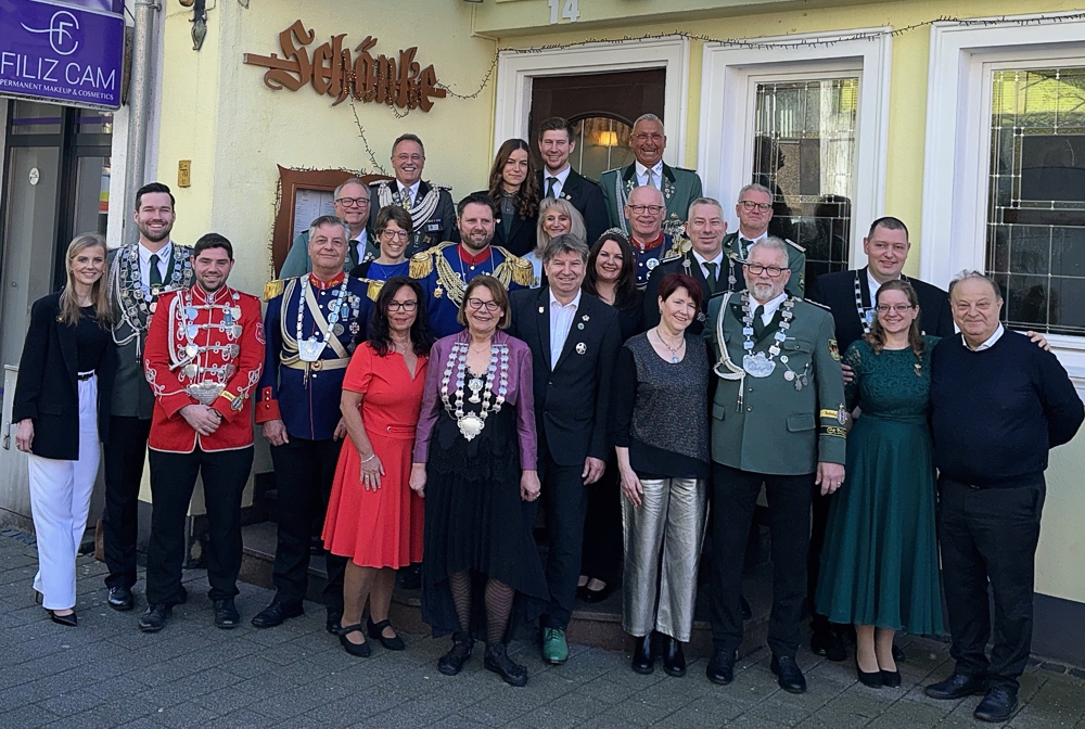 Familie Pandzic lud zum 17. Königeempfang ins Hotel-Restaurant Höttche ein – und waren gute Gastgeber für die Königspaare der Schützen- und Heimatvereine im Stadtverband der Schützen Dormagen. Neben den elf Schützenvereinen freuten sich auch die Vertreter der „Selde Blömcher Ückerath“ und des „Heimatvereins Rheinfeld“, diesem traditionellen Empfang beiwohnen zu können.Die Vereinsvorsitzenden stellten ihre jeweilige Delegation vor, zu denen auch die Obristen gehörten, selbstverständlich alle mitsamt den Ehepartnern. Stephan Seher vom BSV Dormagen hatte – in Kooperation mit dem Stadtverband der Schützen – dieses Treffen organisiert. Es ist eine gesellige Veranstaltung, wo der Austausch der Vereinsvertreter untereinander im Vordergrund steht.